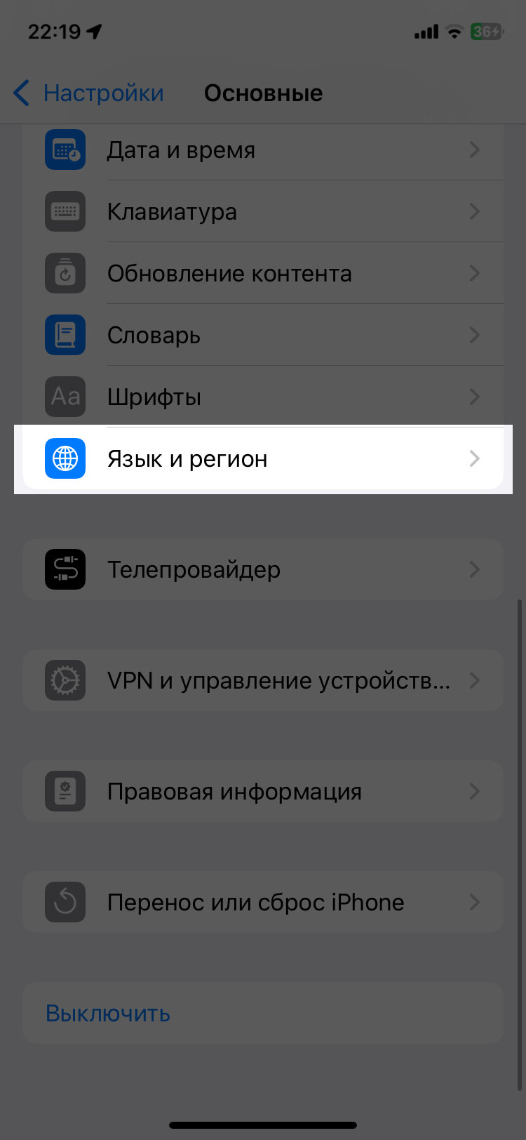 - Откройте «Настройки» и перейдите в «Основные» ➝ «Язык и регион».