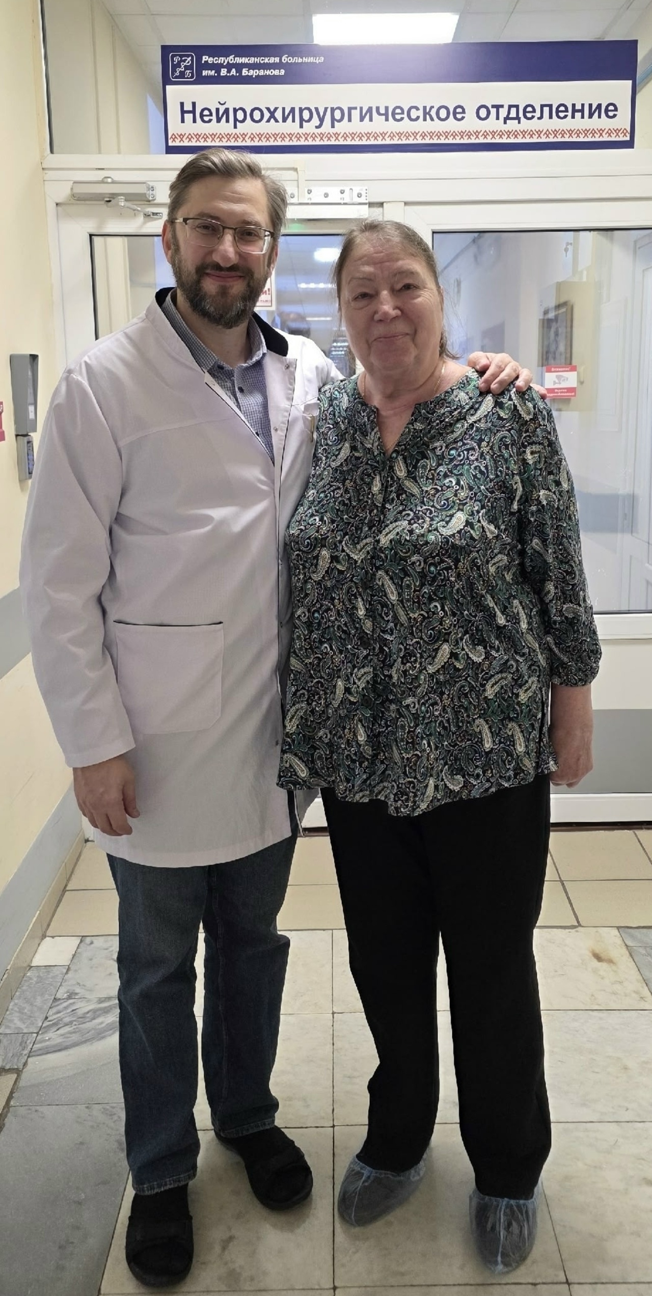 Пациентке сделали над небольшой разрез за ухом и просверлили отверстие размером меньше двух сантиметров, благодаря чему врач смог добраться к структурам мостомозжечкового угла под микроскопом. Хирург смог разъединить спайки, уложить специальный инертный материал и устранить компрессию. Любовь выписали через неделю после операции. Чтобы понять, насколько операция была эффективной, нужно время, но пациентке уже стало лучше.