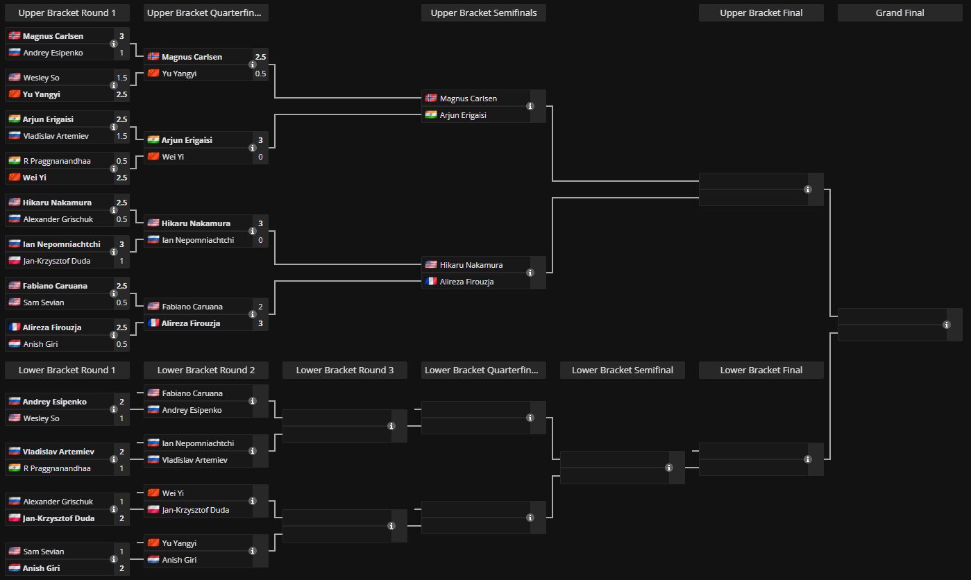 - 19:15 Карлсен 2 – 1 Эригайси / матчи верхней сетки