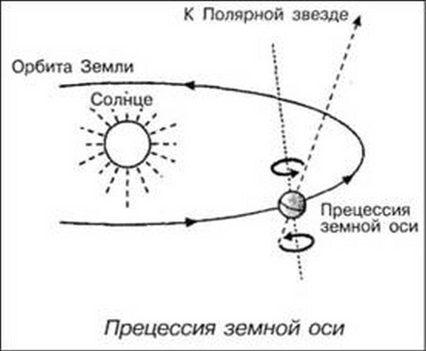 Но ведь помимо годового вращения Земли вокруг Солнца происходит ещё и второе (незаметное, но от этого не менее значимое) медленное прецессионное движение планеты. Ось Земли в прецессии движется по кругу продолжительностью, примерно, в 25920 лет.