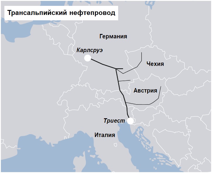 Трансальпийский трубопровод TAL имеет длину 753 километра и работает с 1967 года. Он транспортирует сырую нефть из итальянского порта Триеста в Германию, Австрию и Чехию.
