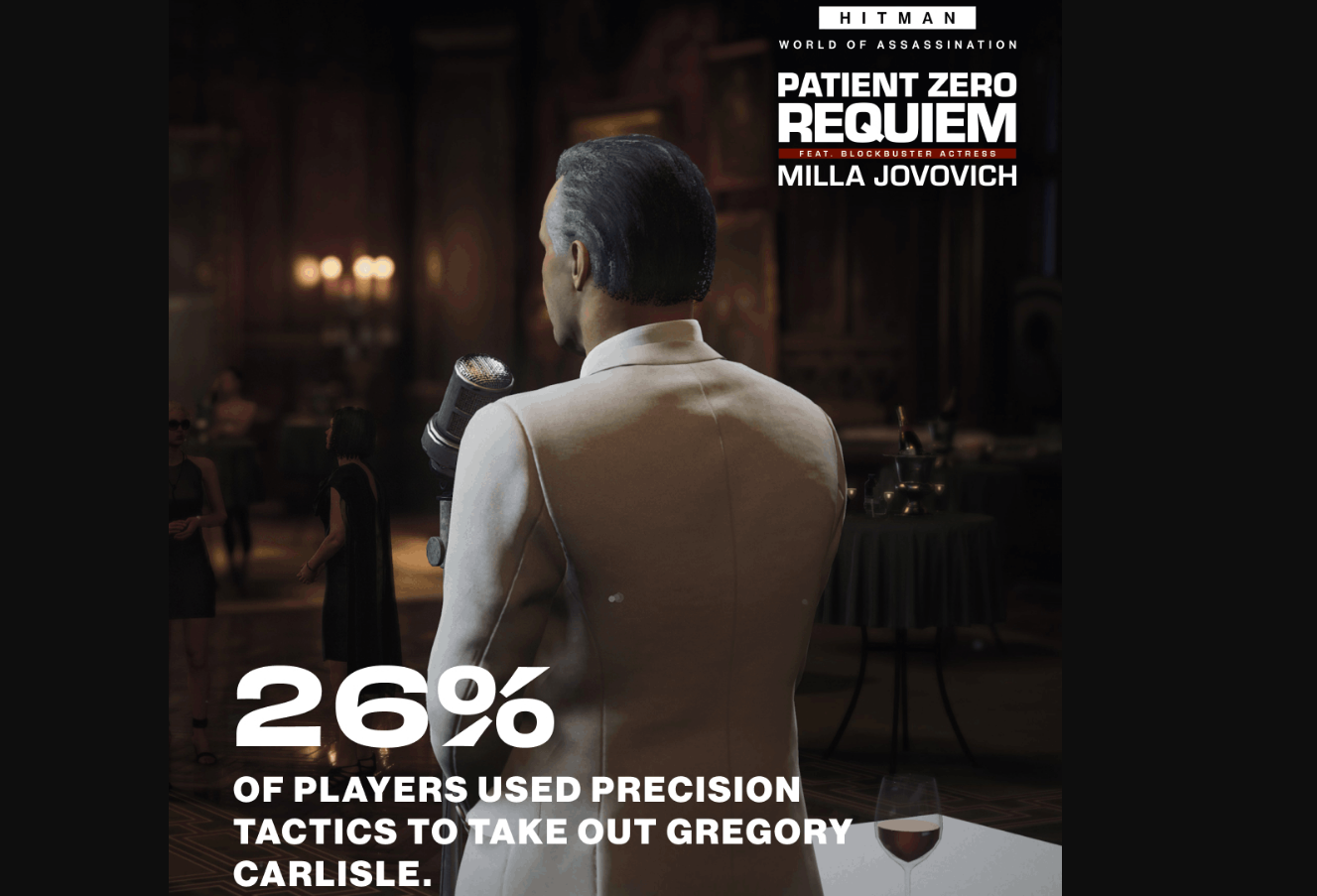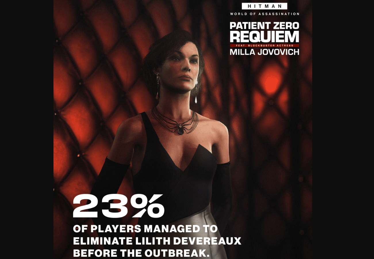 Кроме того, разработчики HITMAN поделились игровой статистикой контракта Patient Zero Requiem, в котором появилась Милла Йовович.