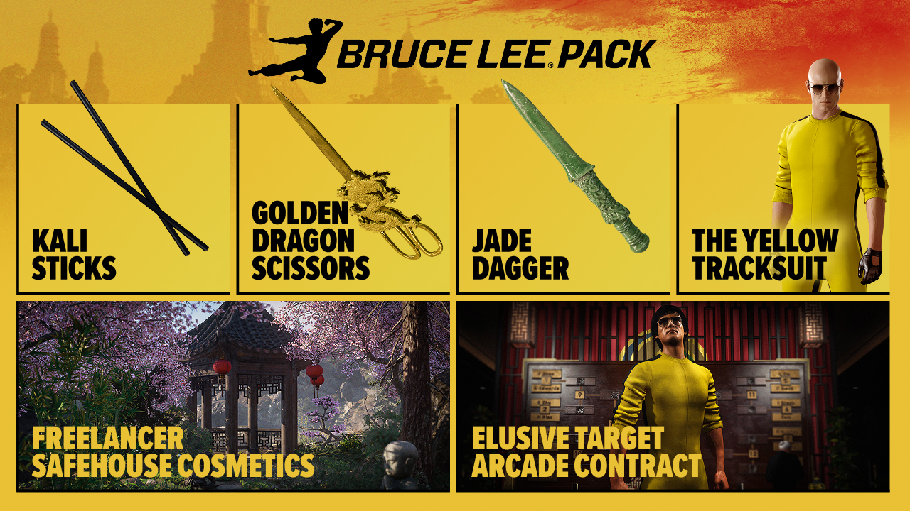 Миссия с актёром доступна для бесплатной игры до 26 апреля. Все желающие также могут приобрести тематический набор Брюса Ли с культовым жёлтым костюмом, нефритовый кинжалом, косметикой, аркадной версией контракта и не только.