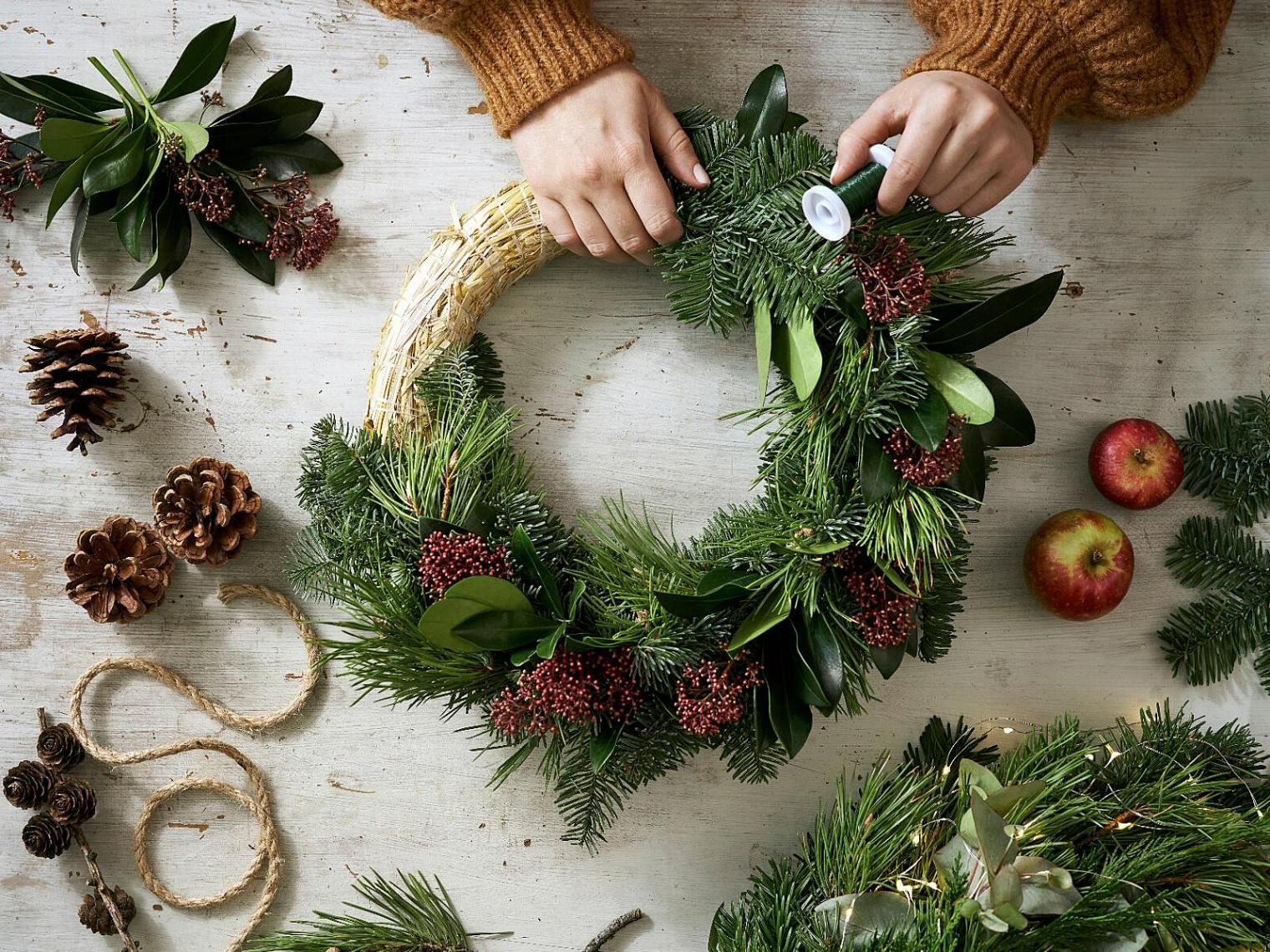 Важный элемент - венок фото: culture.ruГоворя о праздничном декоре и его элементах, нельзя забывать о рождественских венках, которые чаще всего вешают на двери наших домов. Это один из важнейших декоративных символов в период Рождества. Венки могут быть разных цветов и узоров, могут быть богато декорированы или выдержаны в более минималистичном стиле. Интересной идеей также будет сделать такой головной убор самостоятельно. Чаще всего его делают из веток хвойных пород (ели, пихты, сосны) и украшают цветами, листьями, шишками, светильниками и добавлением бантов. Такой орнамент красиво смотрится на двери, придавая ей очень праздничный и возвышенный вид.