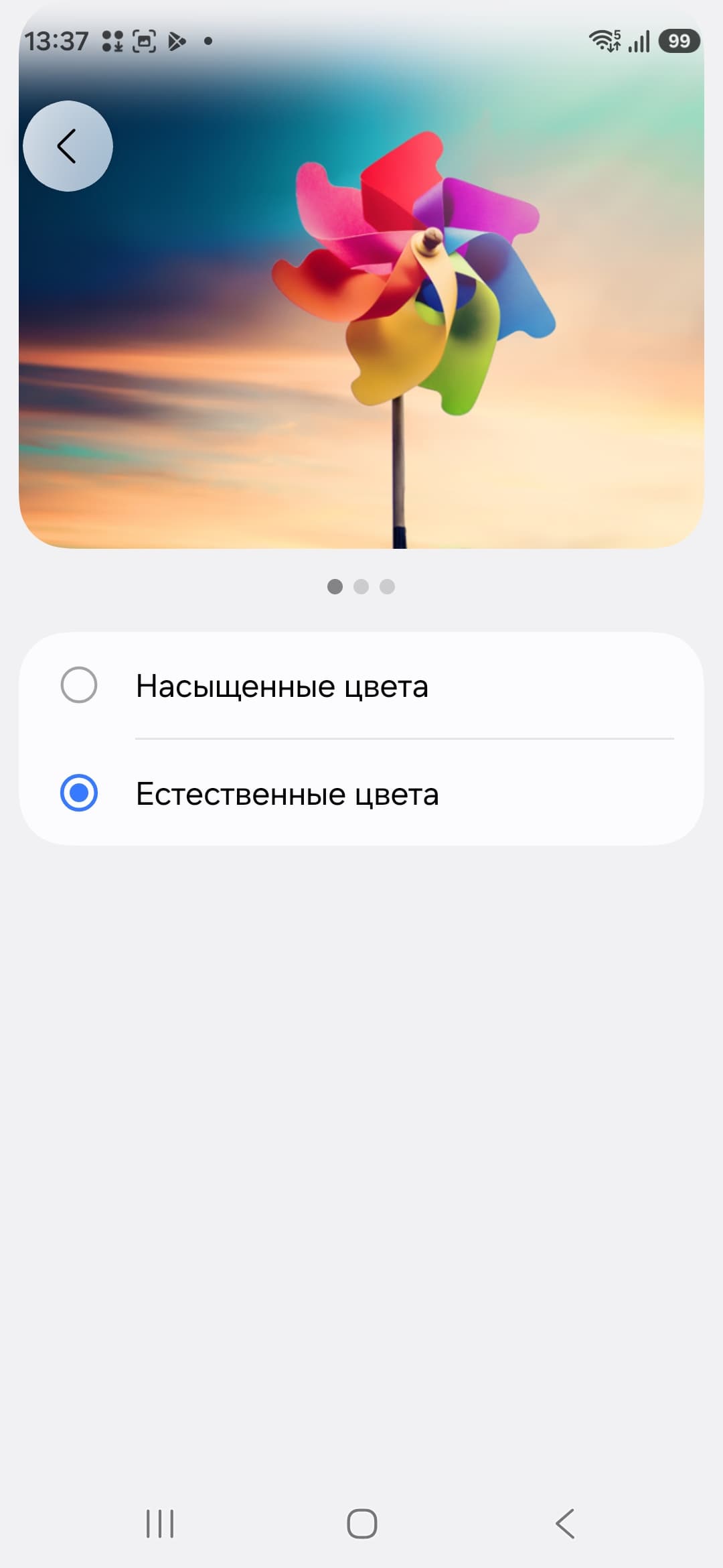 Фотография выше получена после выбора профиля Естественные цвета в настройках экрана, всего их два: