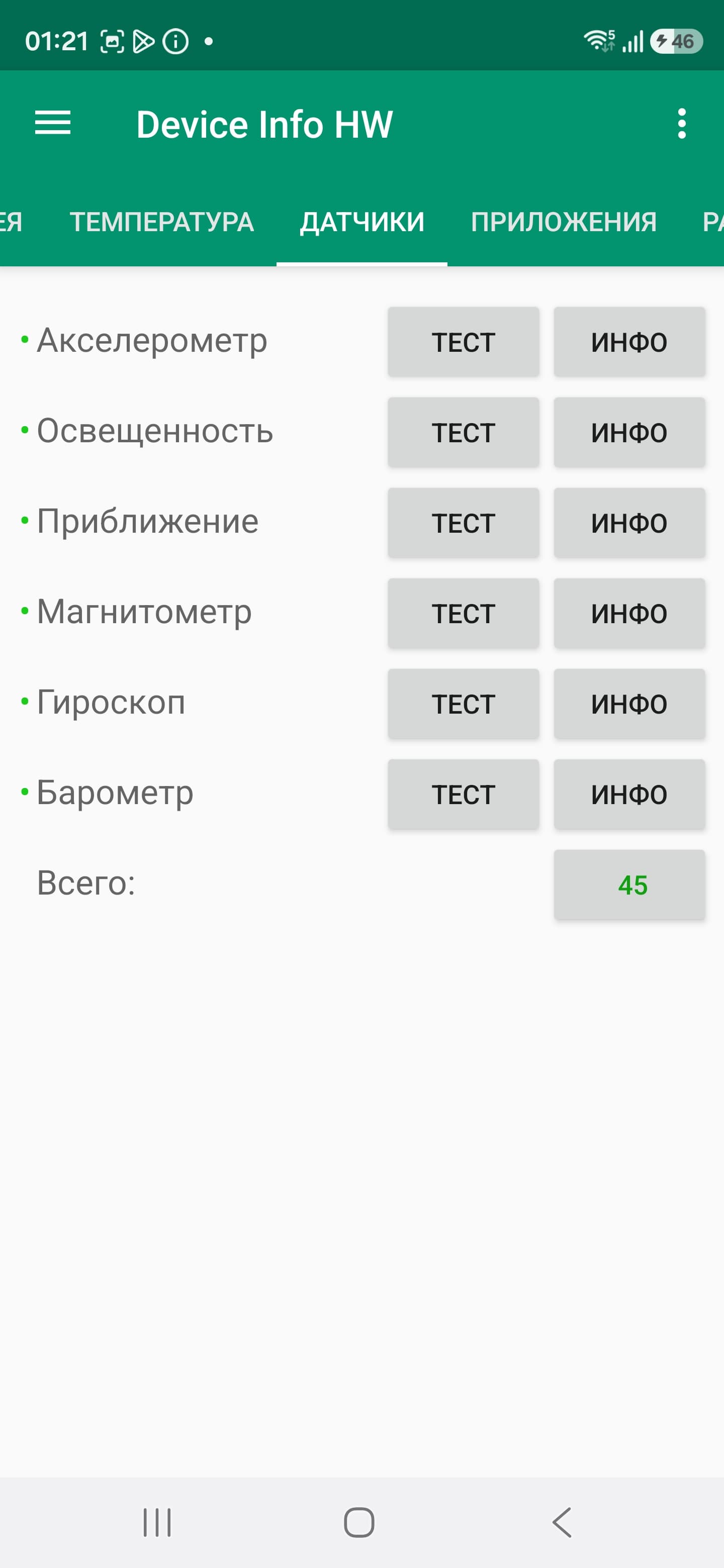 Все необходимые встроенные датчики вплоть до гироскопа на месте. Есть даже встроенный барометр — полный набор. В модели установлен физический датчик приближения.