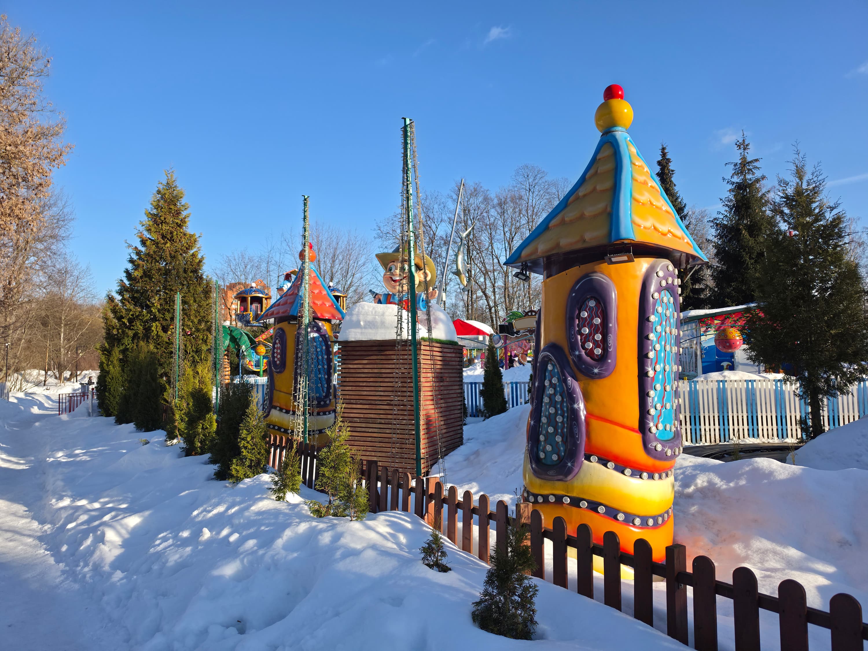 Имеется два отдельных длиннофокусных модуля для оптического зума 3× (Isocell 3LD) и 5× (Sony IMX854). Правда, выбрать фотомодуль, на который будет сделан тот или иной кадр с зумом, автоматика не позволяет. Более того, иногда фотография и вовсе оказывается сделана на основной модуль с кропом. Такой вот современный гибридный зум. К слову, не слишком понятно, насколько вообще оправдана установка двух модулей со столь близкими параметрами. Понятнее было бы, если бы разлет был, например, между 5× и 10×. Как бы то ни было, снимки с зумом обеспечивают большой выигрыш в передаче отдаленных деталей, они в любом случае достаточно четкие, без шумов, с очень небольшими артефактами обработки, светлые, но с немного перенасыщенными красками.
