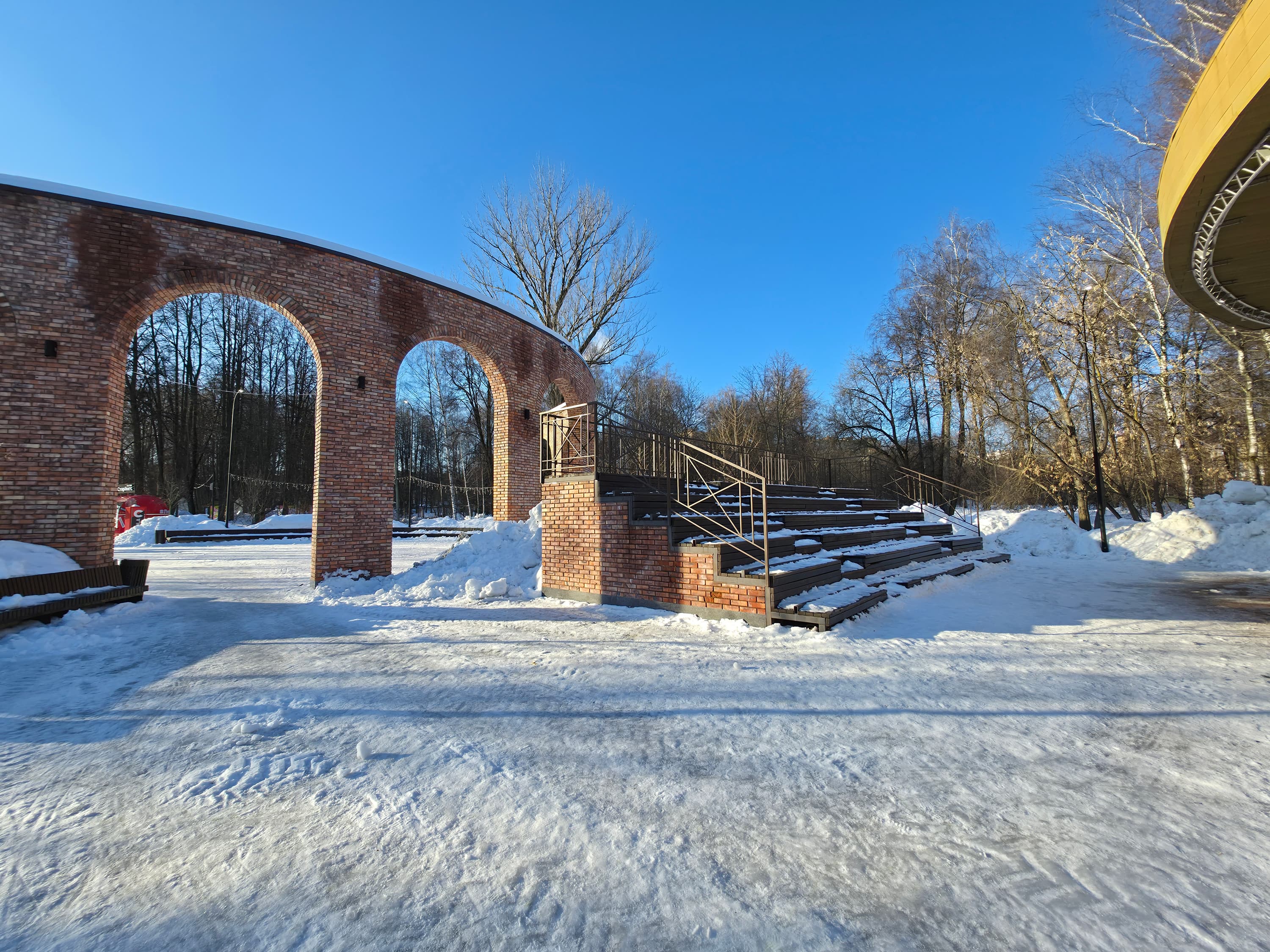 Снимки, сделанные этой камерой, отличаются чистым и аккуратным изображением. Даже в углах 50‑мегапиксельных кадров падение резкости минимально, при этом нет эффекта искусственно завышенной контурной резкости. Динамический диапазон обеспечивает качественную проработку всех световых зон: и ярких участков, и затененных областей. Цвета передаются корректно — и по уровню насыщенности, и с точки зрения цветового баланса. Тени проработаны детально и помогают подчеркнуть объем сцены. В итоге качество съемки довольно высокое, но какие-то части кадра всё время оказываются размыты.