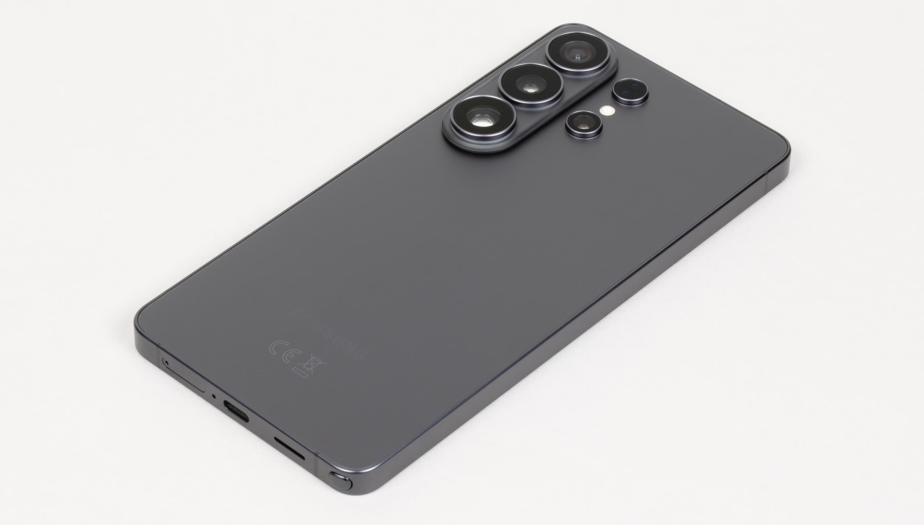 Блок камер на задней панели немного отличается от предыдущей модификации в лучшую сторону. Пропали ненужные широкие с круговыми выемками, собирающими грязь, ободки вокруг камер. На их место пришли тонкие изящные стильные ободки без насечек. Прямое сравнение показало, что в новинке камеры выпирают сильнее, чем в Galaxy S25 Ultra, но смотрится это визуально легче.