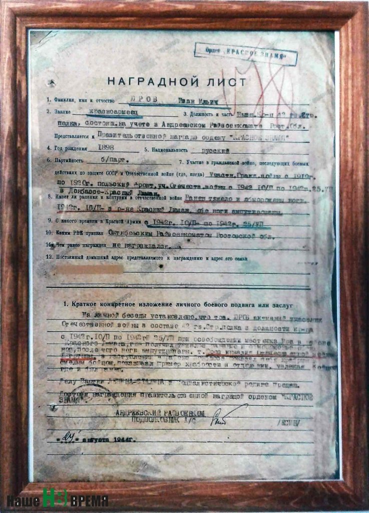 В военном комиссариате Ростовской области и его отделах в городах и районах Дона продолжаются церемонии вручения боевых наград и наградных документов участникам Великой Отечественной войны или их родственникам. Причина, почему в свое время герои не получили награды, в каждом случае своя: кто-то оказался в другой части, кто-то – в госпитале, а кто-то погиб, не успев получить орден…