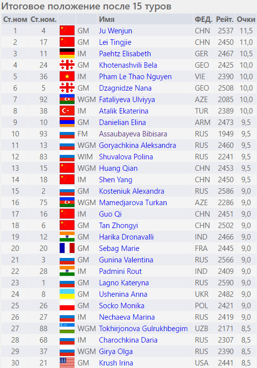 Бибисара Асаубаева перед началом соревнований была в числе замыкающих первую сотню. А закончила мировой рапид с блестящим результатом — на 10 месте. Это лучший показатель среди россиянок. Позади остались десятки международных гроссмейстеров и мастеров. Рейтинг Бибисары по линии ФИДЕ повысился на 166 пунктов.