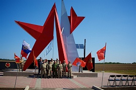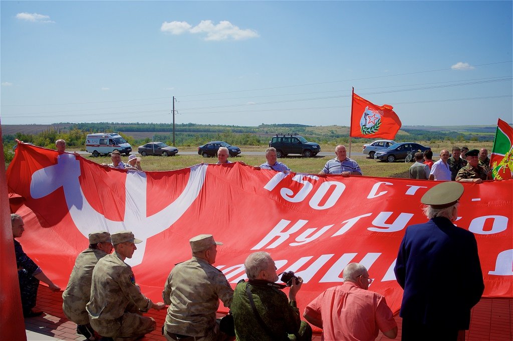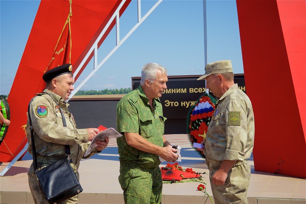 У "Разорванной звезды" прошел митинг. Участники церемонии развернули масштабную копию Знамени Победы. Группе ветеранов вручили медали «100 лет СКВО-ЮВО».