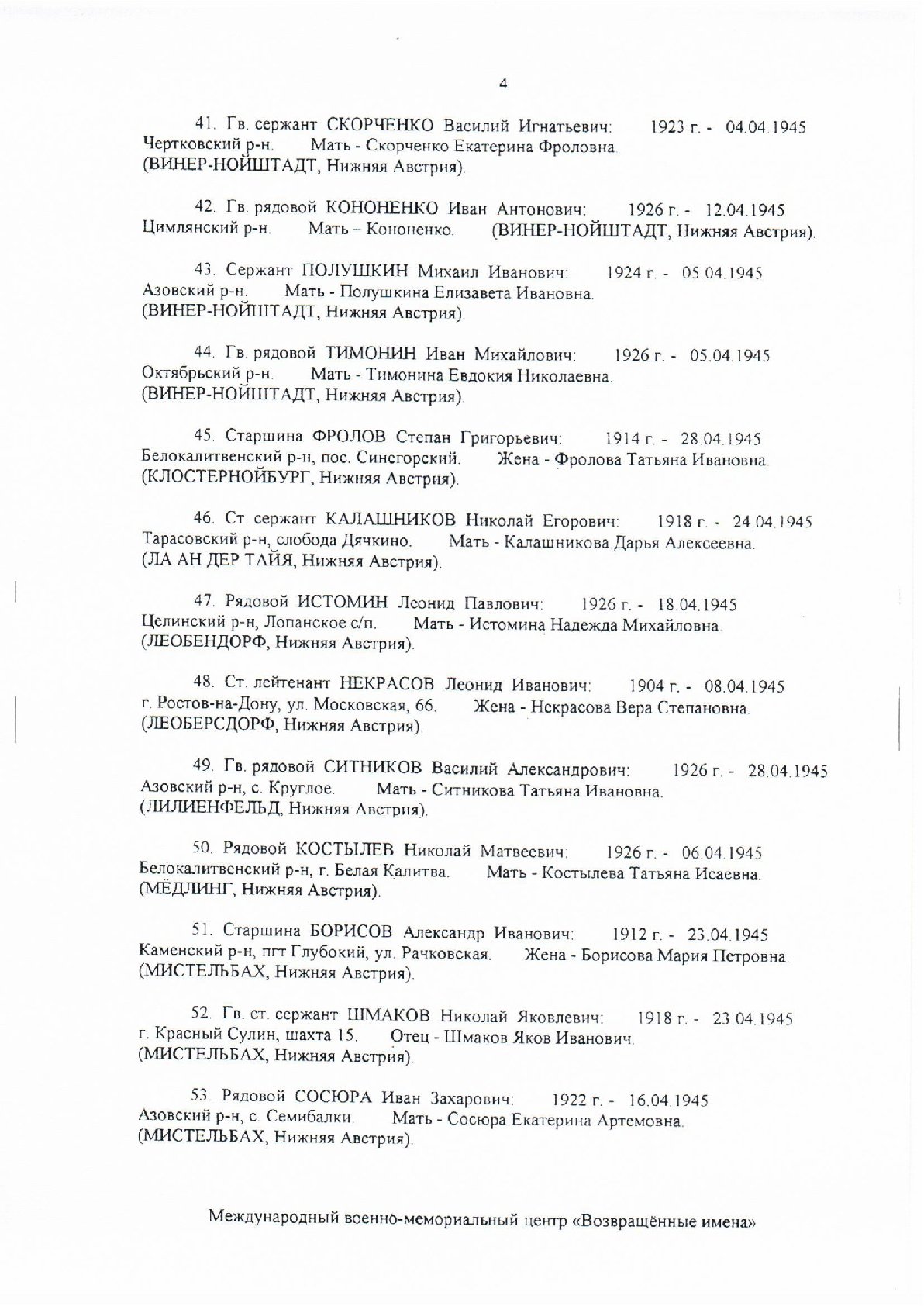 Вот список уроженцев Ростовской области, захороненных там как «неизвестные».