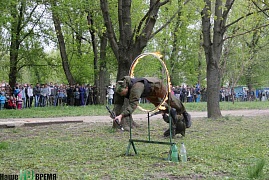 И вот – неожиданная встреча на площади Карла Маркса. Мой старый знакомый здесь в форме спецназовца. И не парадной, а в камуфляже: для ростовских школьников, караульных поста №1 мемориального комплекса «Павшим героям», многочисленной публики «мангустовцы» устроили показательное выступление. Одни бойцы нападали на бронетранспортер, другие отражали дерзкую атаку. Приемы рукопашного боя, защита от ударов ножом, тактика действий в одиночку и группе… – зрители с восторгом приняли столь яркое выступление бойцов «Мангуста». Сразу же после шоу нашлось немало желающих рассмотреть вблизи и изнутри бронетранспортер, сделать селфи на его фоне, сфотографироваться с оружием, состоящим на вооружении спецназа.