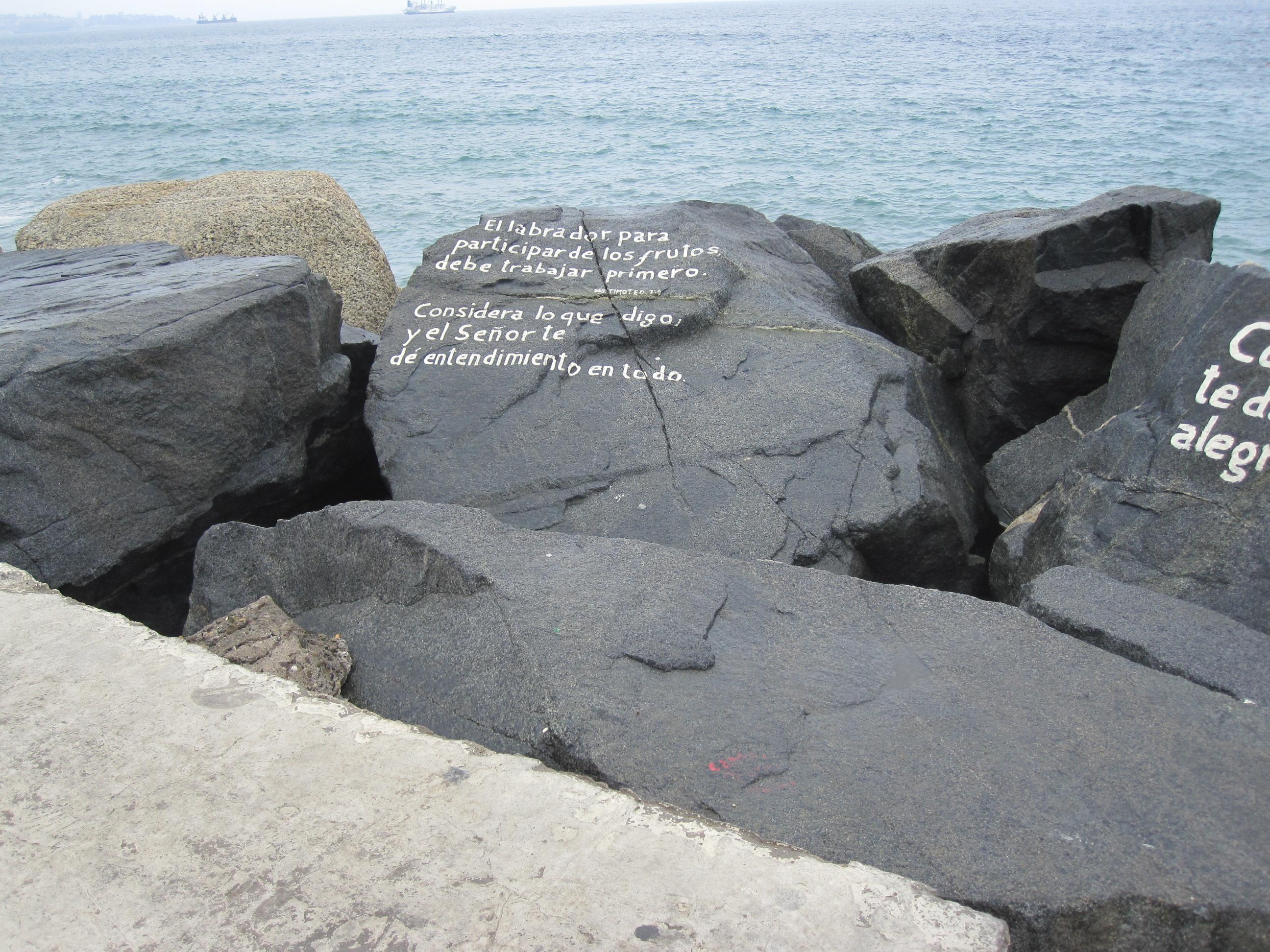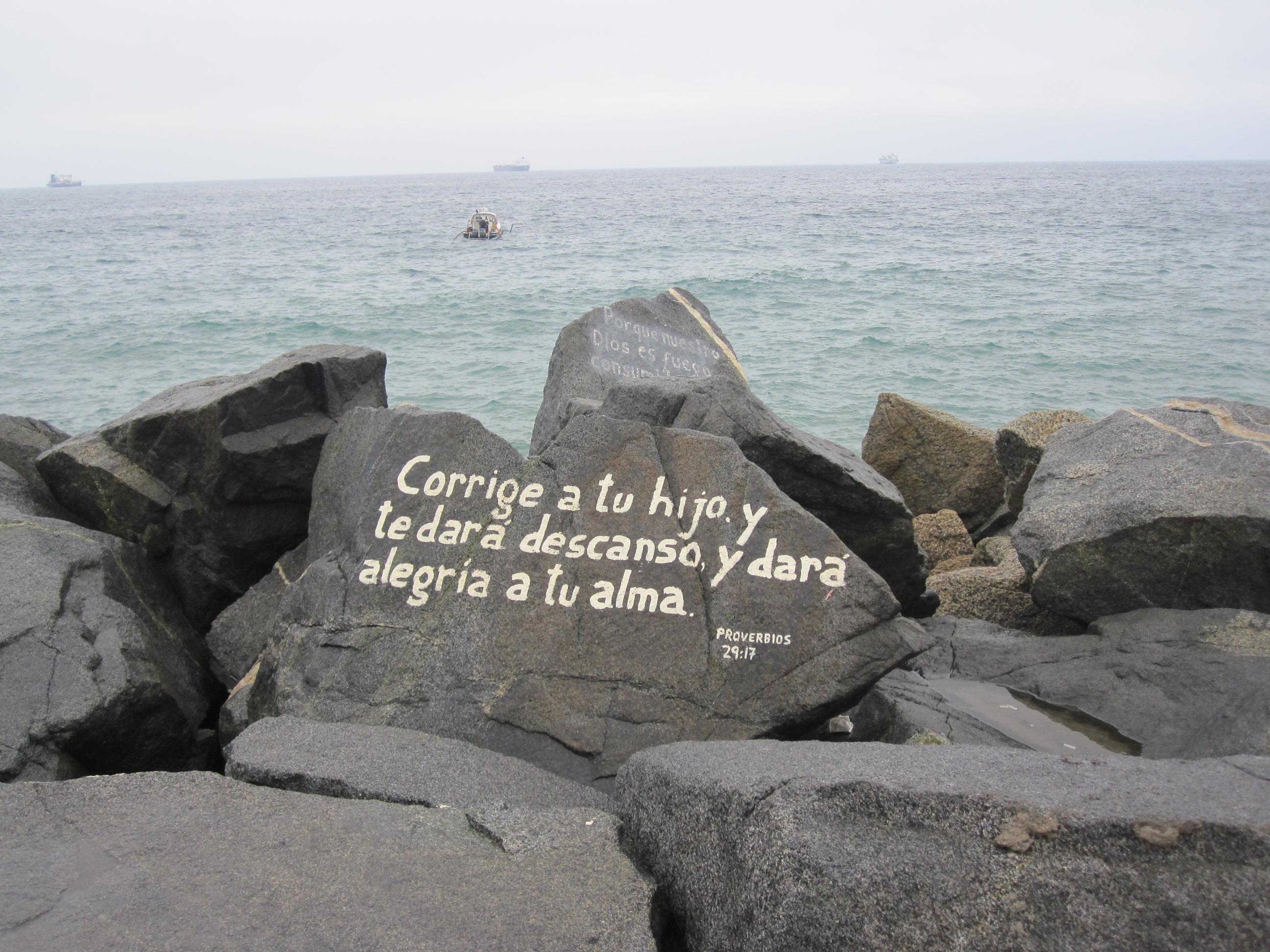 То же видел я и на черноморском побережье, где толпы жирных и пьяных придурков оставляют о себе "память" в виде надписей на объектах природы - скалах, камнях, деревьях и т.п. В Чили видел другое: там на некоторых валунах, лежащих в полосе прибоя, наносят надписи - изречения из классиков испаноязычной литературы. Даже приятно видеть такое.
