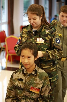 Косова Мария заплетает косу китайской девочке.