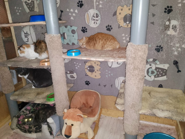 Кошки живут в пристройке к дому, в их «общежитии» тепло и чисто: вдоль стен в несколько ярусов стоят лежанки. Главная здесь — старушка Лиза, которая устроила настоящий матриархат и держит всех в ежовых рукавицах. Есть и новички: например, рыжий котёнок, найденный на улице в морозы. Есть и те, кто останется с Ларисой навсегда: серая кошечка с онкологией и Вишня с нервным расстройством — везти её на лечение в Петербург дорого, а гарантий никто не даёт.