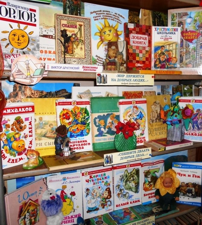 В рамках участия в номинации «Школа добра» XII Всероссийской акции «Добровольцы – детям» симферопольская библиотека-филиал №4 им. М.М. Коцюбинского организовала выставку-инсталляцию «В книжном мире доброты».