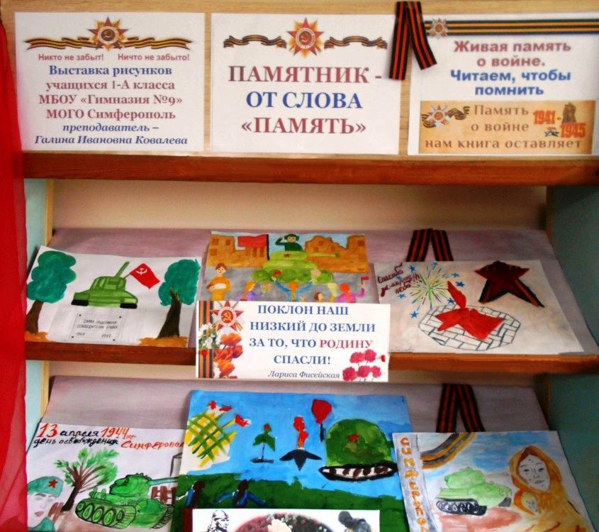 В симферопольской библиотеке-филиале №4 им. М.М. Коцюбинского в рамках участия в детско-юношеской акции «Рисуем Победу-2023» и проекта «Чтение – лучшее учение» начала работу выставка рисунков учащихся 1-а класса столичной гимназии №9 (преподаватель – Галина Ковалева).